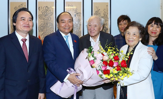 Nhân dịp tới thăm các nhà giáo và cũng là các văn nghệ sỹ có tên tuổi của đất nước, Thủ tướng Nguyễn Xuân Phúc khẳng định Chính phủ đang tích cực nghiên cứu để sớm có những chính sách phù hợp cho các nhà giáo cũng như văn nghệ sỹ để bảo đảm vừa có cuộc sống ổn định vừa có những đóng góp lớn hơn nữa vào sự nghiệp giáo dục - đào tạo và văn học, nghệ thuật Việt Nam.
