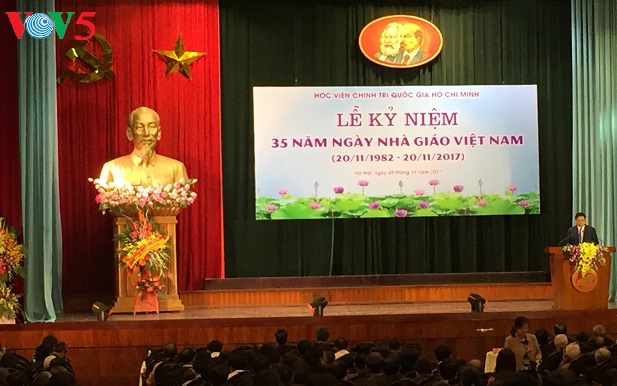 Sáng 20/11, tại Hà Nội, Học viện Chính trị quốc gia Hồ Chí Minh tổ chức lễ mít tinh kỷ niệm 35 năm Ngày Nhà giáo Việt Nam (20/11/1982 - 20/11/2017). Nhân dịp này, Đảng và Nhà nước trao tặng 1 Huân chương Độc lập, 2 Huân chương Lao động và 2 danh hiệu Nhà giáo ưu tú cho cán bộ nhà giáo có nhiều thành tích xuất sắc công tác tại Học viện Chính trị quốc gia Hồ Chí Minh.