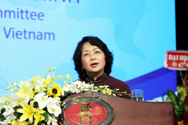 Phó chủ tịch nước Đặng Thị Ngọc Thịnh phát biểu tại buổi lễ - Ảnh: Trần Huỳnh/Tuổi trẻ |