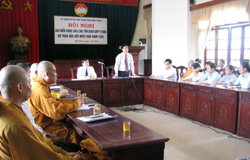 | Hội nghị góp ý vào Dự thảo sửa đổi Hiến pháp năm 1992 được đông đảo các chức sắc tôn giáo tham gia. Ảnh: baobacninh.com |