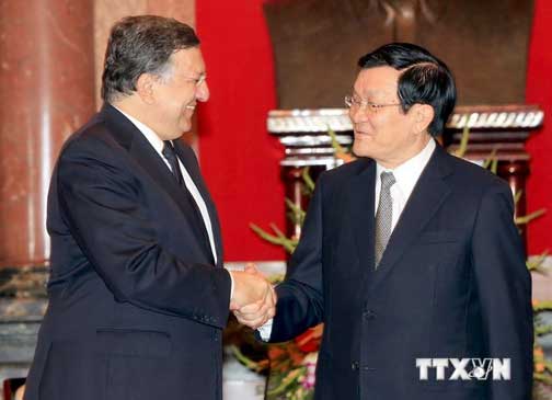 | Chủ tịch nước Trương Tấn Sang tiếp Chủ tịch EC Jose Manuel Barroso thăm chính thức Việt Nam. - Ảnh: TTXVN |