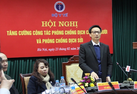 (VOV5) - Hội nghị trực tuyến tăng cường công tác phòng chống dịch cúm ở người và phòng chống dịch sởi diễn ra sáng 23/2 tại Hà Nội. Hội nghị do Bộ Y tế, Bộ Công Thương và Bộ Nông nghiệp và Phát triển Nông thôn tổ chức. Phó Thủ tướng Vũ Đức Đam dự và chỉ đạo Hội nghị.