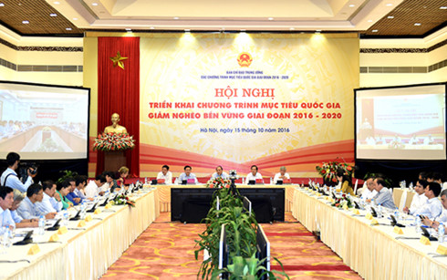 Phát biểu tại hội nghị, Thủ tướng Nguyễn Xuân Phúc đánh giá công tác giảm nghèo đạt hiệu quả cao khi năm 1993 cả nước có tới 58% hộ nghèo thì đến năm 2015 giảm còn 4,25% theo tiêu chí cũ. Nếu tính theo chuẩn nghèo đa chiều thì tính đến cuối năm ngoái, tỷ lệ hộ nghèo là gần 10%, tương đương khoảng 2,3 triệu hộ. Để giúp người nghèo thoát nghèo bền vững, Thủ tướng cho rằng, cần hỗ trợ theo hướng để người dân tự thoát nghèo.
