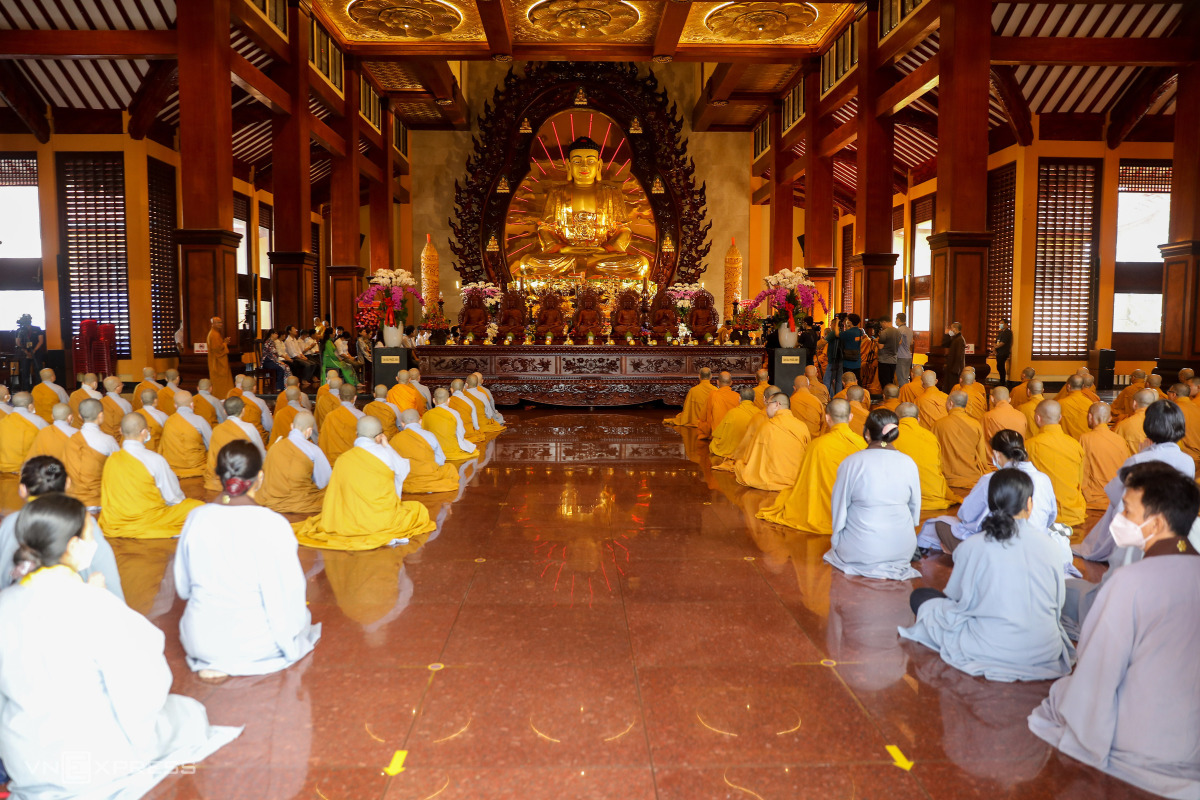 Từ 8h, tại chánh điện chùa Việt Nam Quốc Tự, khoảng 200 phật tử trang nghiêm làm Đại lễ cầu siêu cho các nạn nhân COVID-19. Ảnh: Quỳnh Trần/ VNExpress |