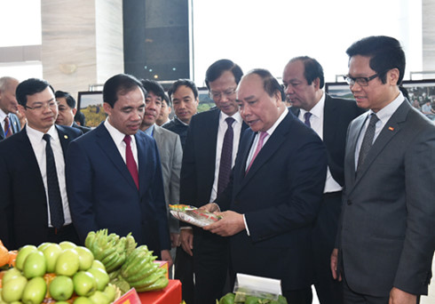 | Thủ tướng thăm quan một số gian hàng nông sản bên lề hội nghị |