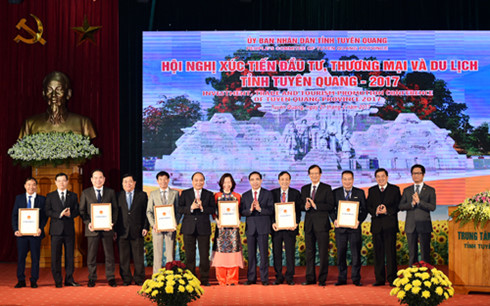 | Thủ tướng Nguyễn Xuân Phúc phát biểu tại Hội nghị xúc tiến đầu tư, thương mại và du lịch tỉnh Tuyên Quang 2017 |