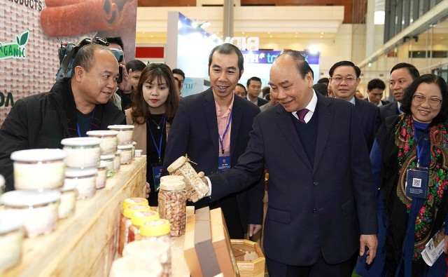 Thủ tướng tham quan các gian hàng bên lề Hội nghị |