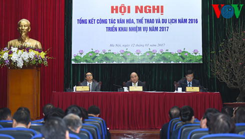 Sáng nay, tại Hà Nội, Thủ tướng Nguyễn Xuân Phúc, Phó Thủ tướng Vũ Đức Đam dự Hội nghị Tổng kết công tác văn hóa, thể thao và du lịch năm 2016, triển khai nhiệm vụ năm 2017 của Bộ Văn hóa – Thể thao và Du lịch.