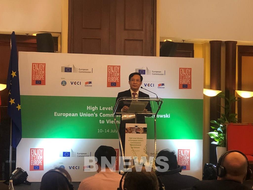 Chủ tịch Liên đoàn Thương mại và Công nghiệp Việt Nam (VCCI) Phạm Tấn Công nhấn mạnh: "Việt Nam mong muốn Liên minh châu Âu sẽ tăng cường chia sẻ thông tin, kinh nghiệp, hỗ trợ Việt Nam xây dựng chính sách mà mô hình phát triển nông nghiệp theo hướng xanh, hiện đại, bền vững. Hỗ trợ tăng cường năng lực cho Việt Nam gồm hỗ trợ phát triển cơ sở hạ tầng, nguồn nhân lực, hỗ trợ kỹ thuật chuyển giao công nghệ, giúp Việt Nam xây dựng các tiêu chuẩn kỹ thuật nông nghiệp tiệm cận với quốc tế. Đặc biệt là hỗ trợ Việt Nam trong thích ứng và giảm tác động của biến đổi khí hậu đối với hoạt động nông nghiệp."
