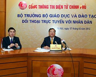 (VOV) - Sáng 7/3, Bộ trưởng Bộ Giáo dục và Đào tạo Phạm Vũ Luận đối thoại trực tuyến với nhân dân tại Cổng thông tin điện tử Chính phủ.