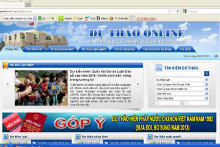 Website duthaoonline, nơi người dân có thể góp ý về Dự thảo sửa đổi Hiến pháp