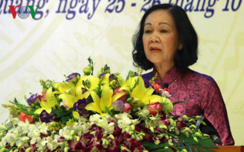 Ủy viên Bộ Chính trị, Trưởng Ban Dân vận Trung ương Trương Thị Mai phát biểu tại hội nghị biểu dương người cao tuổi tiêu biểu (Ảnh: Phương Thoa/VOV) |