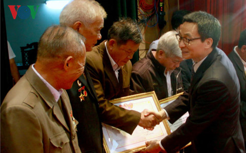 Phó Thủ tướng Vũ Đức Đam tặng bằng khen cho người cao tuổi (Ảnh: Phương Thoa/VOV) |