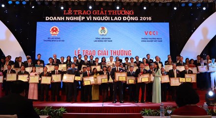 Sáng nay, tại Hà Nội, Tổng Liên đoàn Lao động Việt Nam phối hợp với Bộ Lao động, Thương binh và Xã hội, Phòng Thương mại và Công nghiệp Việt Nam tổ chức Lễ trao giải thưởng “doanh nghiệp vì người lao động 2016”.