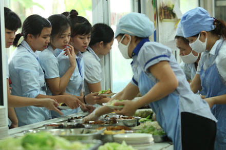 | Bũa ăn giữa ca của công nhân TCty May 10 luôn được đảm bảo đủ chất và lượng (Ảnh: Báo Lao động) |
