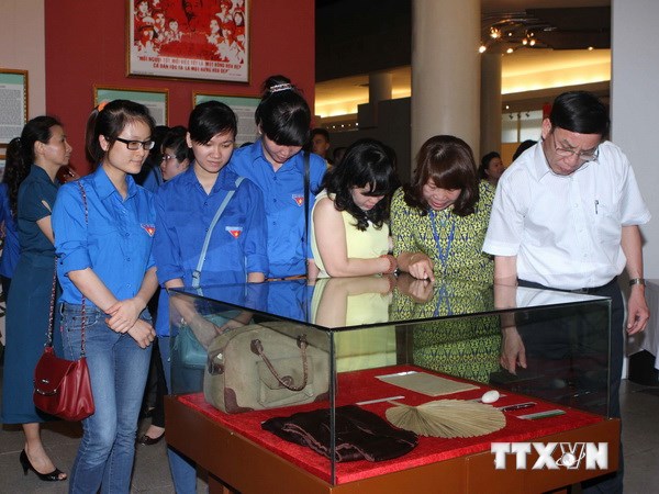 | Khách tham quan triển lãm “Những tấm gương bình dị mà cao quý”. (Ảnh: Phương Hoa/TTXVN) |