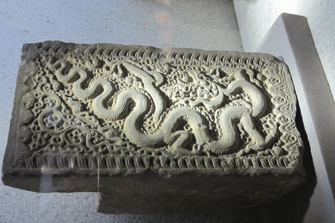 Hình tượng rồng chạm trên cửa đá ở chùa Phật Tích (Bắc Ninh), thời Lý.