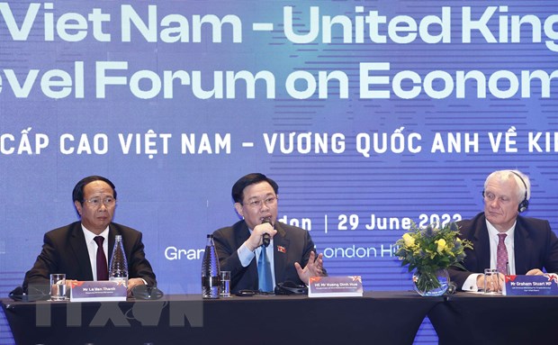 Chủ tịch Quốc hội Vương Đình Huệ dự Diễn đàn cấp cao Việt Nam-Vương quốc Anh về Kinh tế và Thương mại. Nguồn: Doãn Tấn/TTXVN |
