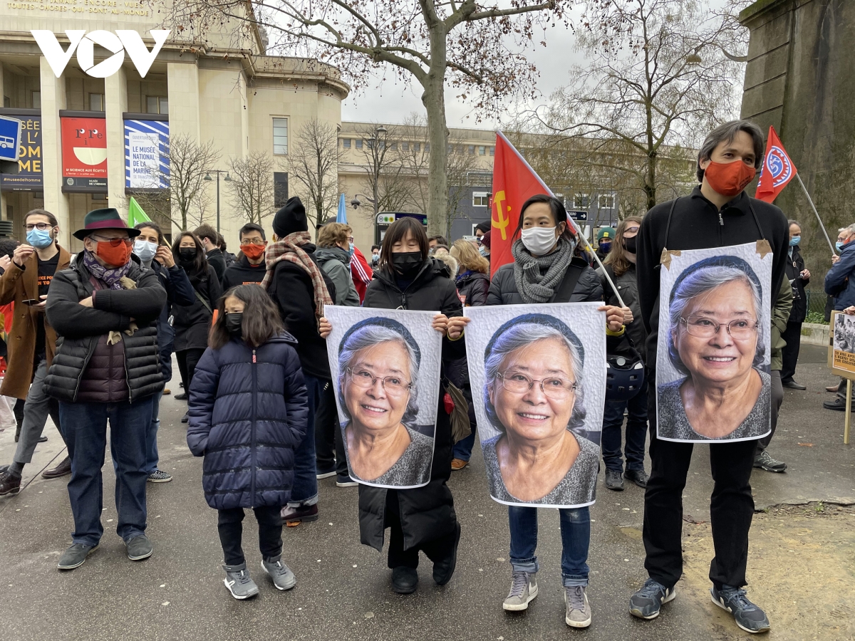 Tuần hành ủng hộ bà Trần Tố Nga. - Ảnh: Huỳnh Điệp/ VOV- Paris |