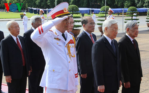 Kỷ niệm 69 năm Quốc khánh nước CHXHCN Việt Nam, sáng 2/9, các vị lãnh đạo Đảng, Nhà nước, Mặt trận Tổ quốc Việt Nam do Tổng Bí thư Ban chấp hành TW Đảng CSVN Nguyễn Phú Trọng dẫn đầu vào Lăng viếng Chủ tịch Hồ Chí Minh và dâng hương tưởng niệm các anh hùng liệt sĩ. Tham gia đoàn còn có Chủ tịch Quốc hội Nguyễn Sinh Hùng, các Ủy viên Bộ Chính trị, Bí thư Trung ương Đảng.