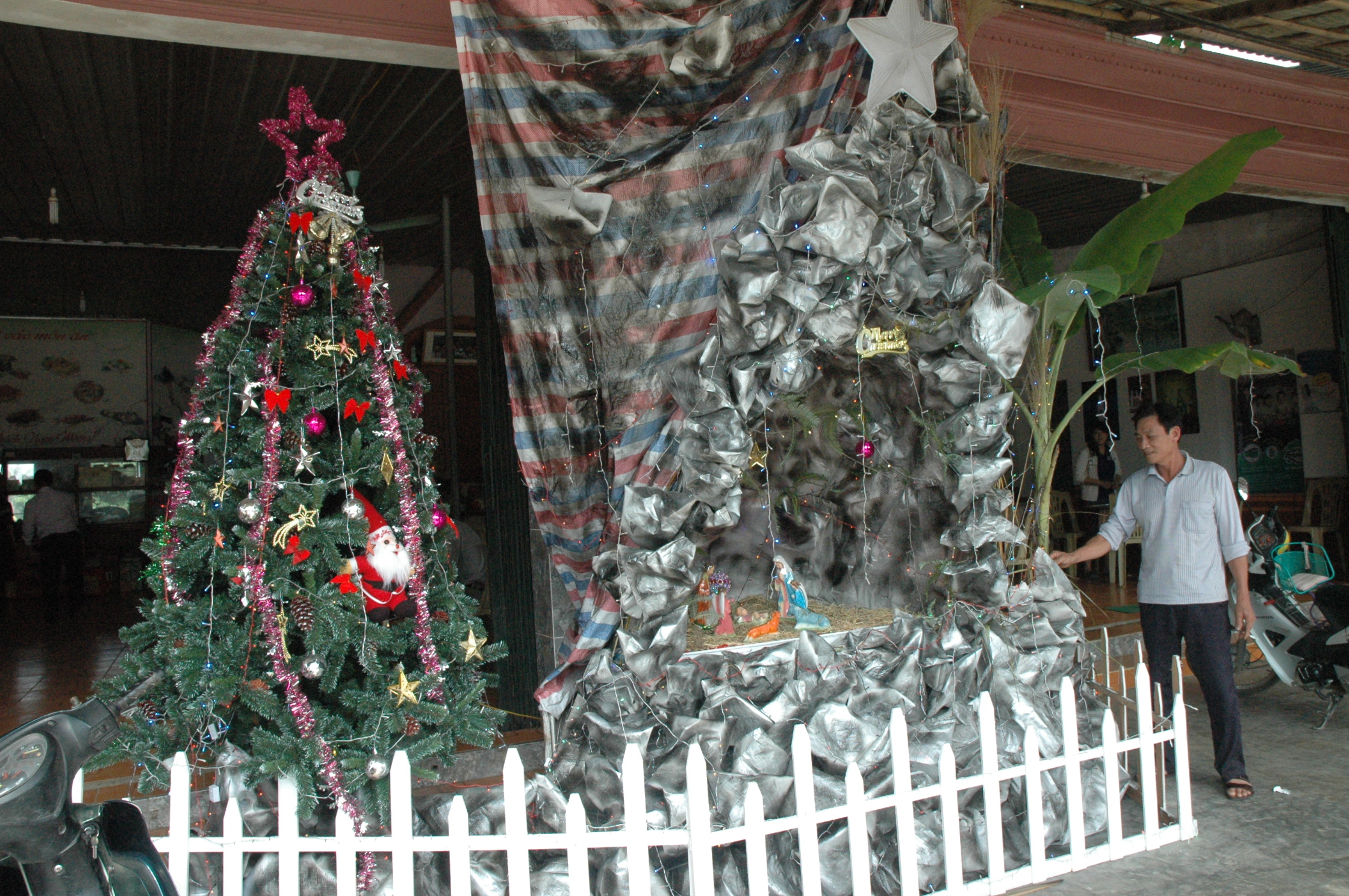 Gia đình anh Nguyễn Đức Viêm ở khối 6, thị trấn Tân Kỳ tỉnh Nghệ an đã chuẩn bị rất chu đáo, với hang đá kết đèn hoa. Anh Viêm tâm sự: “Mùa giáng sinh của chúng tôi lúc nào cũng rộn ràng. Dịp này có rất nhiều điều để chia sẻ với nhau, có lời ca, tiếng hát chúc tụng cho nhau gia đình và cuộc sống thường ngày hạnh phúc. Điều này cũng nói lên rằng mùa giáng sinh rất an lành và rất hạnh phúc”.