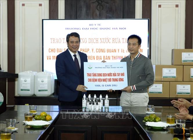 Tại Trường Đại học Dược Hà Nội, đội ngũ giảng viên, sinh viên trẻ nhà trường đã pha chế hàng nghìn lít nước rửa tay đạt chuẩn; trao tặng cho các cơ quan, đơn vị, trường mầm non và nhiều bệnh viện trên địa bàn thành phố…; tặng 1.000 chai nước rửa tay (dung tích 100ml) tới thanh thiếu nhi, người dân tỉnh Vĩnh Phúc thông qua Công đoàn Y tế Việt Nam.