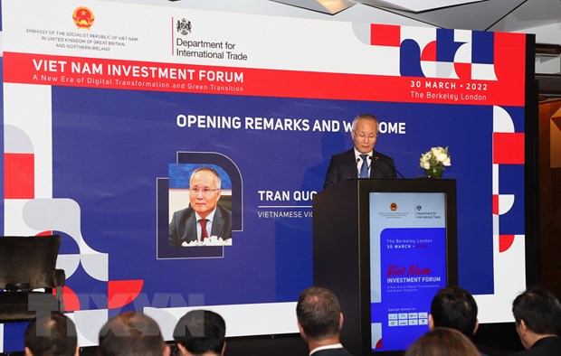 Ngày 30/3, Diễn đàn đầu tư Việt Nam với chủ đề “Kỷ nguyên mới về chuyển đổi số và chuyển đổi xanh” được tổ chức tại London nhằm thúc đẩy đầu tư nước ngoài nói chung và đầu tư của Anh vào Việt Nam nói riêng trong bối cảnh đất nước mở cửa trở lại sau đại dịch COVID-19.