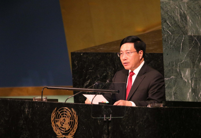 Ngày 22/9, Phó Thủ tướng, Bộ trưởng Bộ Ngoại giao Phạm Bình Minh dẫn đầu đoàn đại biểu Việt Nam tham dự phiên Thảo luận cấp cao Khóa họp 72 Đại hội đồng Liên hợp quốc tại thành phố New York, Mỹ.