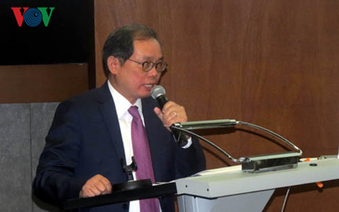 | Đại sứ Đặc mệnh toàn quyền Việt Nam tại Pháp Nguyễn Ngọc Sơn phát biểu tại hội thảo. |