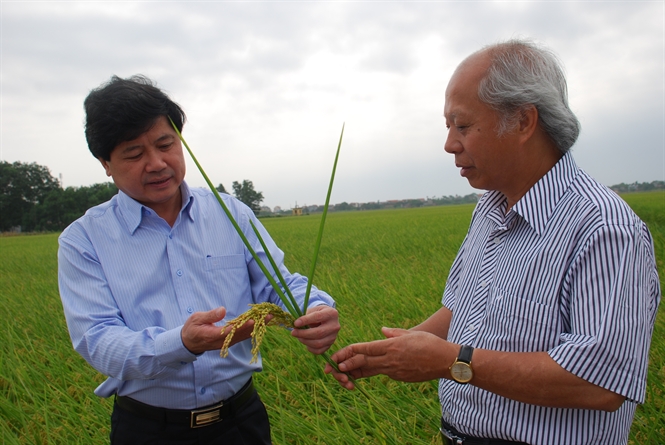 | Thứ trưởng Lê Quốc Doanh (trái) thăm cánh đồng mẫu lớn xã Cao Xá, huyện Lâm Thao, tỉnh Phú Thọ - Ảnh: Đình Trường/Báo Nông nghiệp Việt Nam |