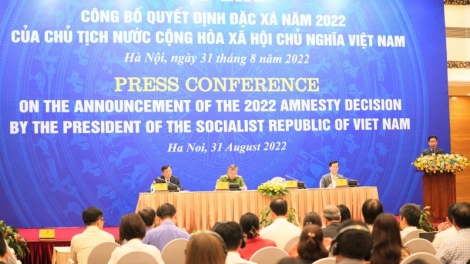 (VOV5) - Sáng 31/08, Văn phòng Chủ tịch nước phối hợp với các cơ quan có liên quan tổ chức họp báo công bố Quyết định đặc xá năm 2022 của Chủ tịch nước.