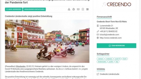(VOV5) - Credendo nhận định Việt Nam đã và đang được hưởng lợi từ sự thay đổi của môi trường thương mại và việc tổ chức lại chuỗi cung ứng đang diễn ra và mang lại lợi thế cho Việt Nam trong dài hạn.