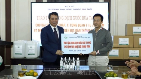 (VOV5) - Đội ngũ giảng viên, sinh viên trẻ nhà trường đã pha chế hàng nghìn lít nước rửa tay đạt chuẩn; trao tặng cho các cơ quan, đơn vị, trường mầm non và nhiều bệnh viện.