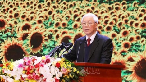 (VOV5) - Theo Tổng Bí thư, Chủ tịch nước, hiện nay, toàn Đảng, toàn dân và toàn quân đang phấn đấu thực hiện Cương lĩnh của Đảng, Hiến pháp của Nhà nước