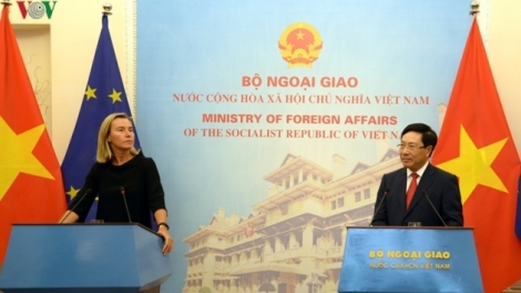 (VOV5) - Phó Thủ tướng, Bộ trưởng Ngoại giao Phạm Bình Minh hoan nghênh lập trường của EU ủng hộ tự do, an ninh, an toàn hàng hải tại Biển Đông.