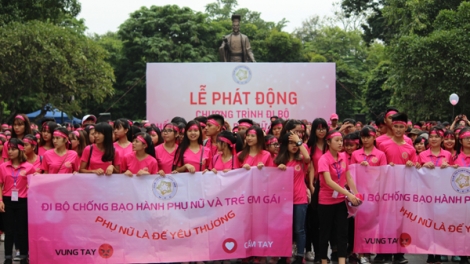 (VOV5) - Ngày 22/10, tại tượng đài Lý Thái Tổ (Hoàn Kiếm, Hà Nội) diễn ra "Lễ phát động Chương trình đi bộ chống bạo hành phụ nữ và trẻ em gái 2017".