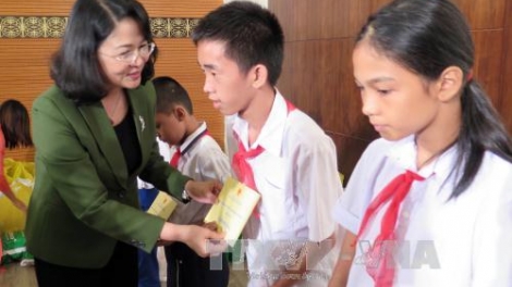 (VOV5) - Phó Chủ tịch nước đã trao tặng 100 suất học bổng cho các em học sinh bị nhiễm chất độc da cam/dioxin, tặng 100 suất học bổng cho các em học sinh vùng biển.