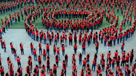 (VOV5) - Điểm nổi bật nhất của Ngày hội là chương trình đồng diễn với sự tham gia của 2.000 bạn trẻ trên nền nhạc bài hát “Đến với con người Việt Nam tôi”.