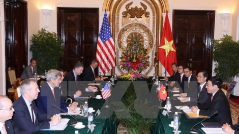 (VOV5) - Phó Thủ tướng, Bộ trưởng Ngoại giao Phạm Bình Minh và Ngoại trưởng Hoa Kỳ John Kerry chủ trì họp báo để thông báo về kết quả của cuộc hội đàm và trả lời câu hỏi của báo chí.