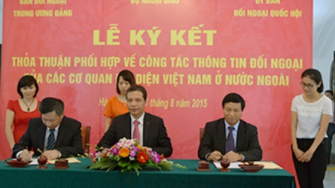 (VOV5) - Bộ Ngoại giao, Ban Đối ngoại Trung ương Đảng và Ủy ban Đối ngoại Quốc hội ký Thỏa thuận phối hợp về công tác thông tin đối ngoại của các Cơ quan đại diện Việt Nam ở nước ngoài.