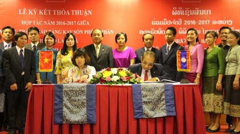 (VOV5) - Lễ Ký Thỏa thuận hợp tác giữa Bảo tàng Hồ Chí Minh (Việt Nam) và Ban Phụ trách Bảo tàng Cayson Phomvihane, Lào, giai đoạn 2016-2017 diễn ra tại thủ đô Vientine, Lào.