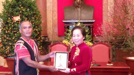 (VOV5)- Sáng 10/2, tại Phủ Chủ tịch, Phó Chủ tịch nước Nguyễn Thị Doan tiếp Đoàn đại biểu là già làng, trưởng bản, nghệ nhân, người có uy tín của 5 dân tộc thiểu số có dân số dưới 1000 người.