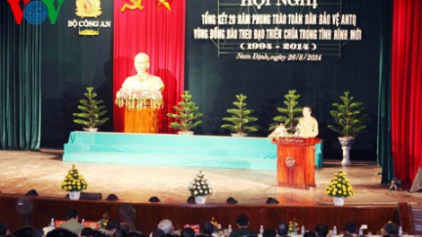 (VOV5) - Sáng nay, 26/8, tại tỉnh Nam Định, Bộ Công an tổ chức nghị toàn quốc tổng kết 20 năm thực hiện Chỉ thị số 11 về việc "Đẩy mạnh phong trào quần chúng bảo vệ an ninh Tổ quốc vùng đồng bào theo đạo Thiên chúa trong tình hình mới giai đoạn 1994- 2014".
