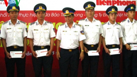(VOV5) - Chương trình trao 40 suất quà, mỗi suất trị giá 3 triệu đồng tiền mặt cho gia đình các kiểm ngư viên và cảnh sát biển có hoàn cảnh khó khăn.
