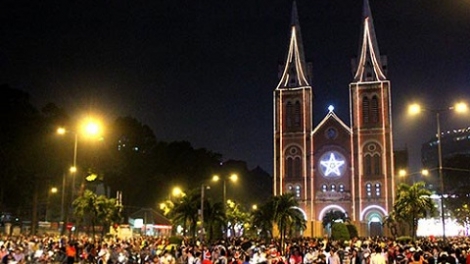 (VOV5) - Từng đoàn người đổ về đây từ chập tối mong được sống trong không khí Giáng sinh an lành
