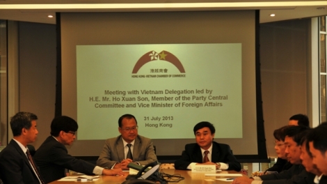 (VOV5)- Ngày 31/7, đoàn công tác liên ngành của Việt Nam do ông Hồ Xuân Sơn, Thứ trưởng Bộ Ngoại giao, dẫn đầu có buổi làm việc với Phòng Thương mại Hong Kong (Trung Quốc) - Việt Nam. Đây là chặng dừng chân cuối cùng trong chuyến thăm và khảo sát vành đai kinh tế Vịnh Bắc Bộ của đoàn diễn ra từ ngày 26 - 31/7.