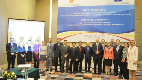 (VOV5) - Ngày 04/6, tại Hà Nội, Phái đoàn Liên minh châu Âu tại Việt Nam phối hợp với Bộ Ngoại giao Việt Nam tổ chức hội thảo giới thiệu “Chương trình Đối thoại Chiến lược hỗ trợ thực thi Hiệp định khung về Đối tác và Hợp tác toàn diện Việt Nam – EU”. Chương trình do EU tài trợ với nguồn kinh phí 2,9 triệu euro, có thời hạn 3 năm, hỗ trợ cho việc thực hiện sớm Hiệp định Đối tác và Hớp tác toàn diện Việt Nam – EU (PCA) được ký vào năm ngoái tại Brusell, Bỉ.