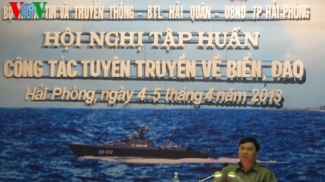 (VOV5) - Sáng 04/4, tại Hải Phòng, Bộ Thông tin và truyền thông phối hợp với Bộ Tư lệnh Hải quân và thành phố Hải Phòng tổ chức “Hội nghị tập huấn công tác tuyên truyền về biển đảo” cho sỹ quan Quân chủng Hải quân, cán bộ Sở Thông tin và Truyền thông các tỉnh phía Bắc và các cơ quan thông tấn báo chí Trung ương và địa phương.