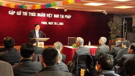(VOV5) - “Tăng cường hiệu quả đóng góp của trí thức Việt kiều tại Pháp với quê hương đất nước”, là nội dung cuộc gặp gỡ các trí thức Việt kiều lần đầu tiên do Đại sứ quán Việt nam tại Pháp tổ chức ngày 20/01. Theo Đại sứ Việt Nam tại Pháp Dương Chí Dũng, cuộc gặp này bàn các biện pháp nâng cao hơn nữa hiệu quả đóng góp về vật chất, tinh thần của lực lượng trí thức Việt kiều đối với đất nước.