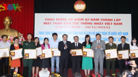 (VOV5) - Sáng nay, tại Hà Nội, Ủy ban Trung ương Mặt trận tổ quốc Việt nam tổ chức kỷ niệm 82 năm thành lập Mặt trận Dân tộc thống nhất Việt Nam (18/11/1930)- 18/11/2012).